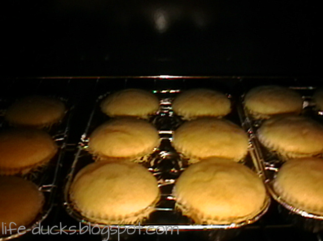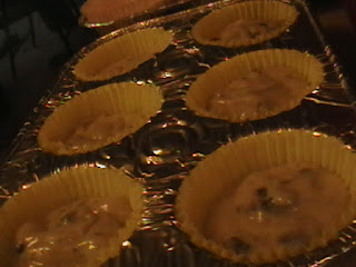 After the muffins were out of the pans, I started on teh cupcakes. I made them with some yummy yellow cake mix, and resisted licking the spoon!