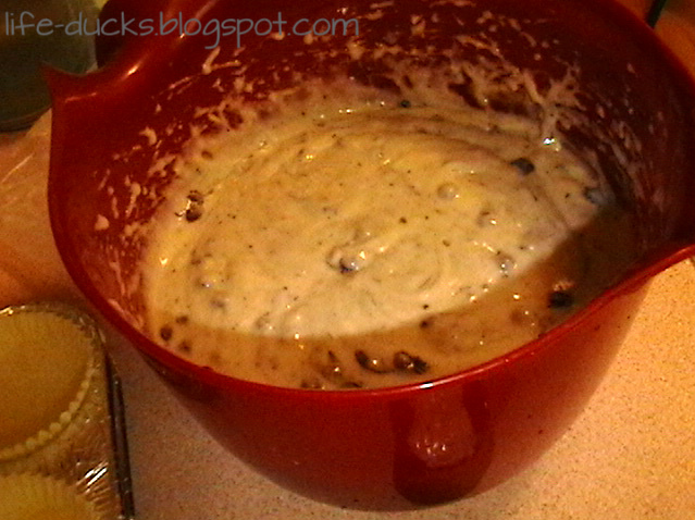 After the muffins were out of the pans, I started on teh cupcakes. I made them with some yummy yellow cake mix, and resisted licking the spoon!
